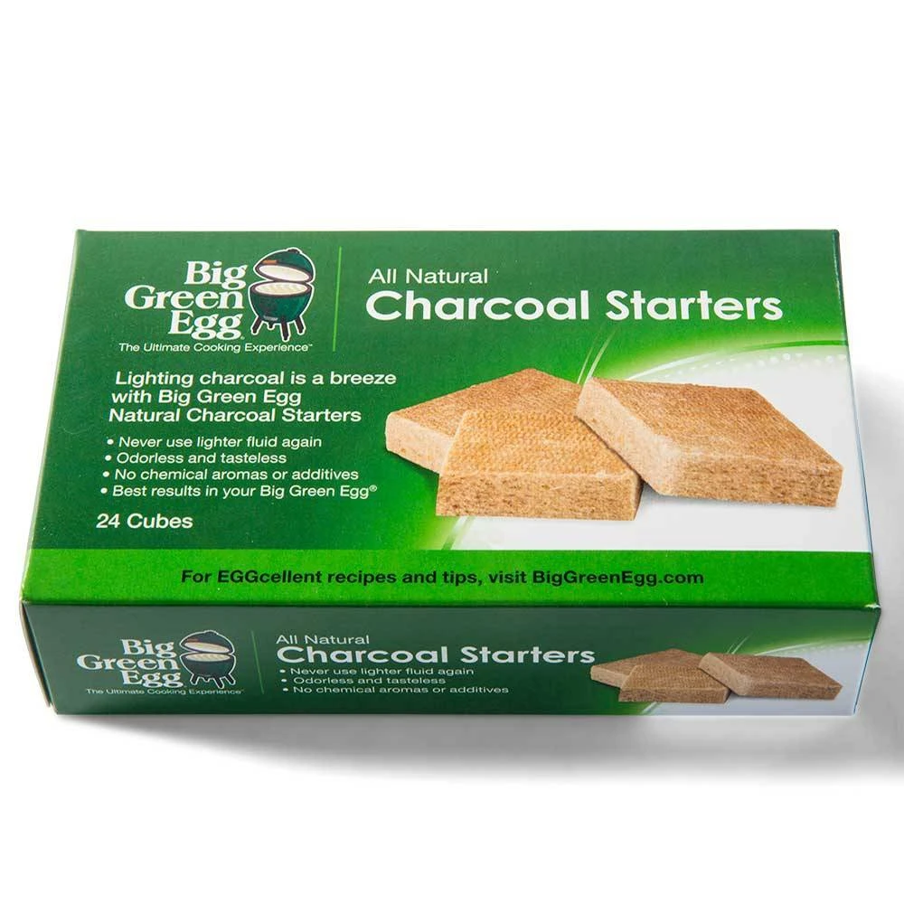 Met de Charcoal Starters heb je een vlammende start bij het EGG’en. Je steekt de houtskool in je Big Green Egg er veilig mee aan, zonder aanmaakvloeistoffen of chemische toevoegingen. Deze aanmaakblokjes bestaan uit geperste houtvezels waardoor je geen (zwarte) walm of penetrante geur van petroleum krijgt. Je heb slechts 2-3 aanmaakblokjes nodig.