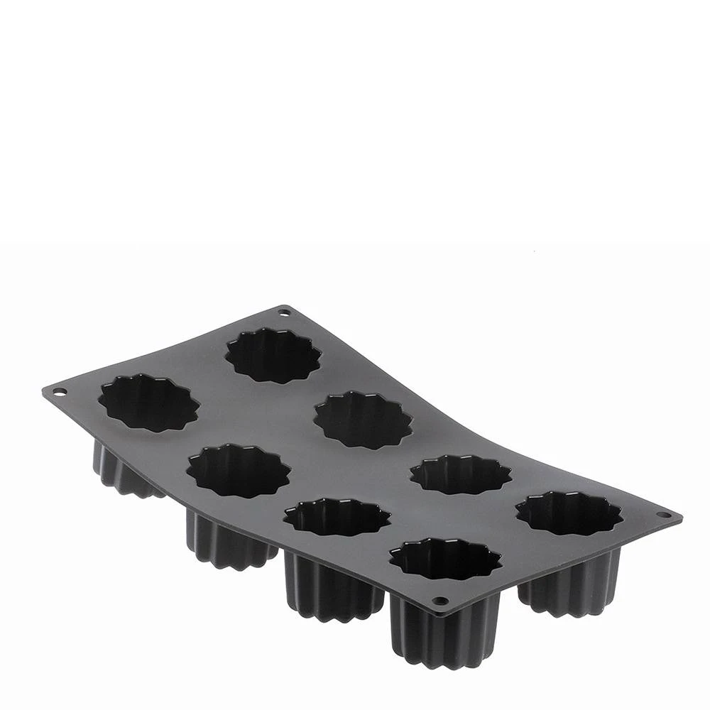 Zacht, niet-klevend en resistent. De siliconenvormen in de Moul'flex-lijn kunnen worden gebruikt in de oven, zowel traditioneel als in de magnetron, en voor koudvormen (tussen -40 ° en + 280 ° C). Ze zijn gemaakt met behulp van platina food-grade siliconen, gegarandeerd peroxidevrij. Ze zijn zwart van kleur en absorberen hitte gelijkmatig over het hele oppervlak. De lijn biedt talloze vormen, variërend van individuele cakes tot grote traditionele cakes voor meerdere personen.