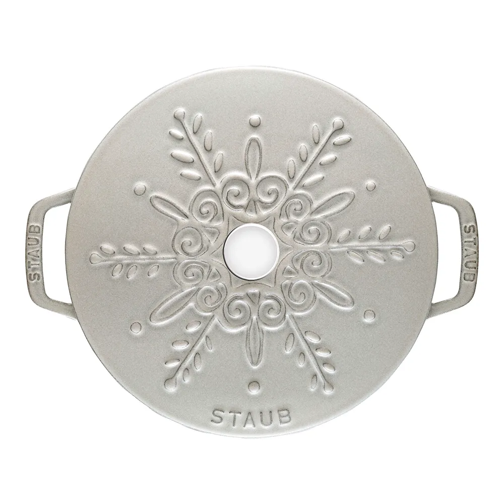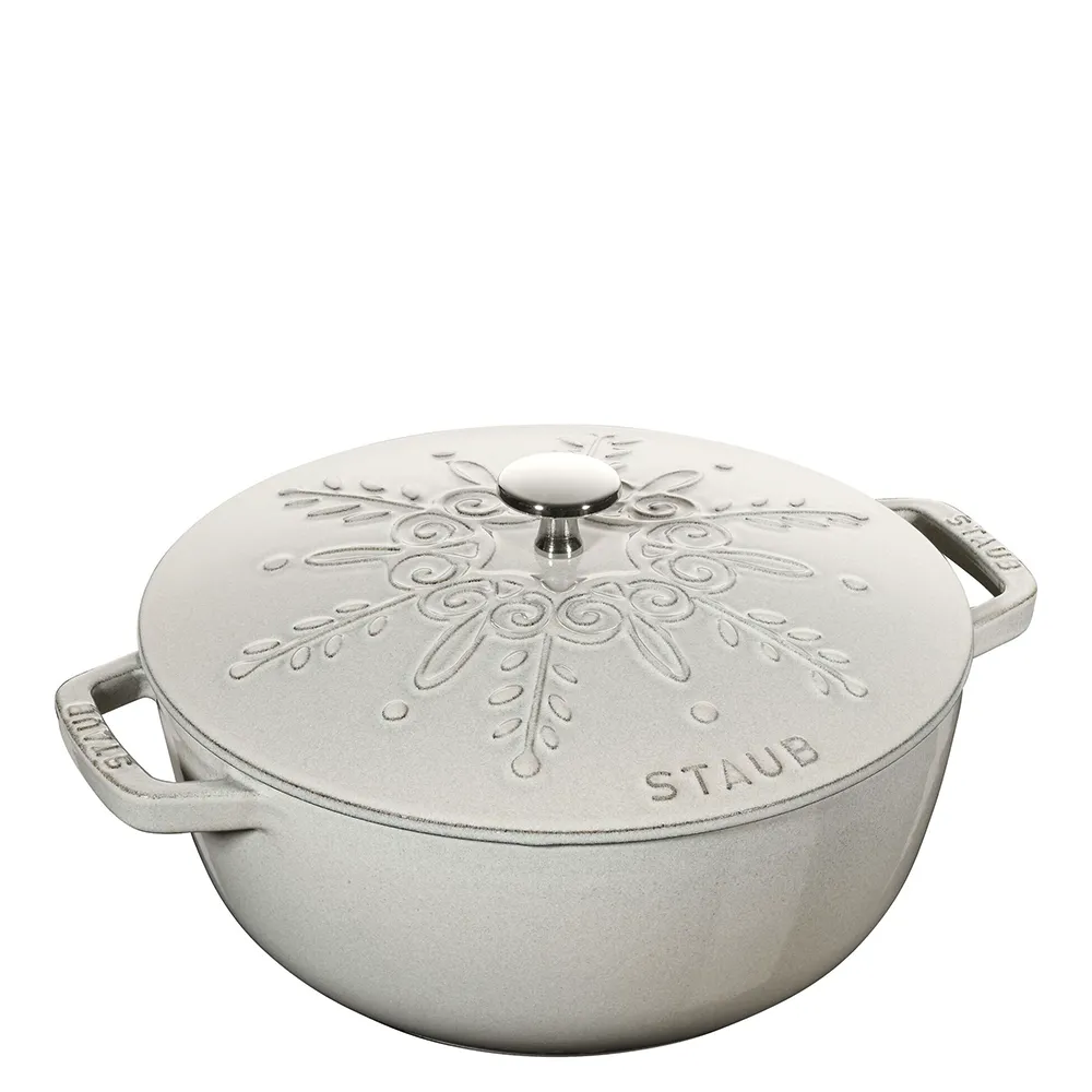 Probeer het eens met recepten zoals “groentepilaf met saffraan en kipfilet” of een romige risotto. Deze cocotte is geschikt voor alle soorten kookplaten en kan ook in de oven worden gebruikt, bijvoorbeeld om brood in een perfecte ronde vorm te bakken. 24 cm diameter, rond, White Truffle Art edition gewelfd deksel met sneeuwvlokpatroon Geëmailleerd gietijzer voor hoge duurzaamheid Roestvrijstalen knop Geschikt voor alle soorten kookplaten, inclusief inductie en in de oven