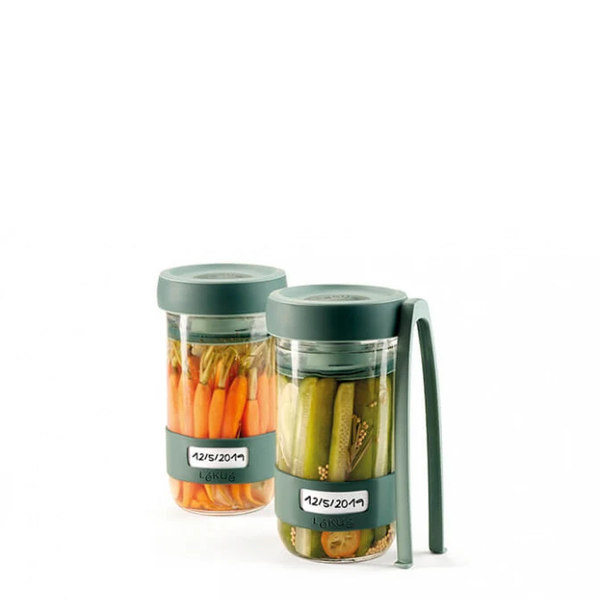 Van robuust glas, polypropyleen en platina silicone. Met deze set van Lékué, heb je alles in huis om in ideale omstandigheden je groenten in glazen flessen te laten fermenteren. Met verstelbare persschijven en deksels met ventiel voor de evacuatie van koolstofdioxide.
