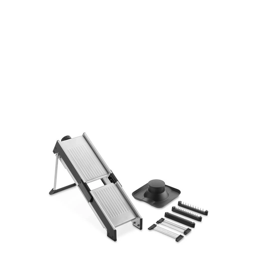 De Michel BRAS mandoline biedt u vijf verschillende bladen van edelstaal VG10. De fijne afwerking en bijzondere scherpte garanderen optimale, schone snijden inkomen - voor echte actie van koken in de keuken. Hand bescherming en opslag box's zijn hetzelfde.