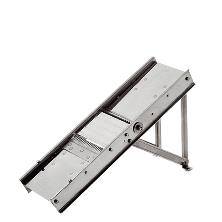 Deze professionele topmandoline van Bron Coucke is een tijdbesparende aanwinst voor elke hobbychef. Gemaakt van robuust RVS en in staat om grote hoeveelheden groenten snel en precies te snijden. Geschikt voor langdurig en intensief gebruik met een roterend mes voor julienne (3 mm breed) en friet (10 mm breed). De mandoline maakt rechte sneden met het gladde mes en kruisende sneden met het gekartelde mes. Het is deze mandoline die Jeroen Meus gebruikt in Dagelijkse kost.