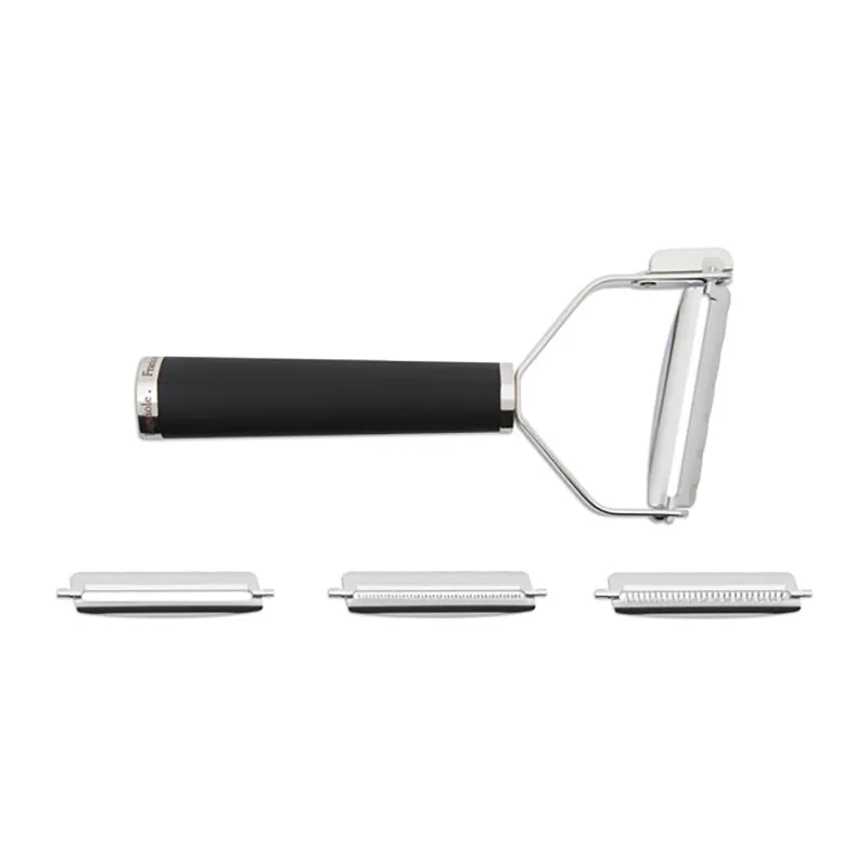 Het maakt een verschil of je een aardappel, komkommer of asperges schilt. De snijdikte van de rechte en juliennebladen varieert dienovereenkomstig. En de juliennestroken zijn vierkant, zoals ze zouden moeten zijn. Ze werken sneller dan met een mes en volgen het principe van "gelijkheid voor iedereen", althans in de keuken. Elke strook is identiek.